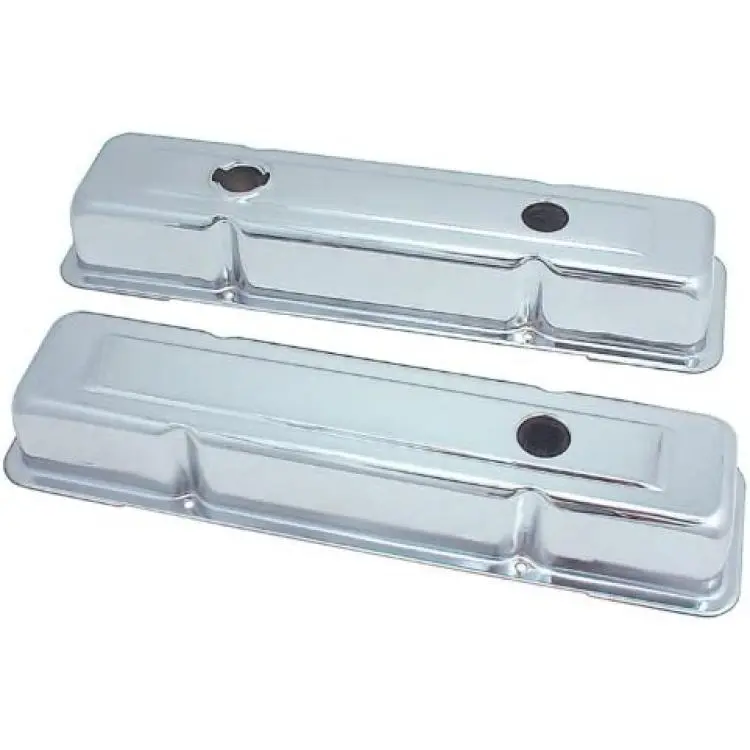 Spectre Small Block Chevy Short 3-Hole Valve Covers are sold in pairs and they are baffled, triple chrome plated steel. Designed for the small block Chevrolet engine they feature a standard OEM height. Manufactured using high quality materials, Spectre valve covers are engineered for optimum fit and function.