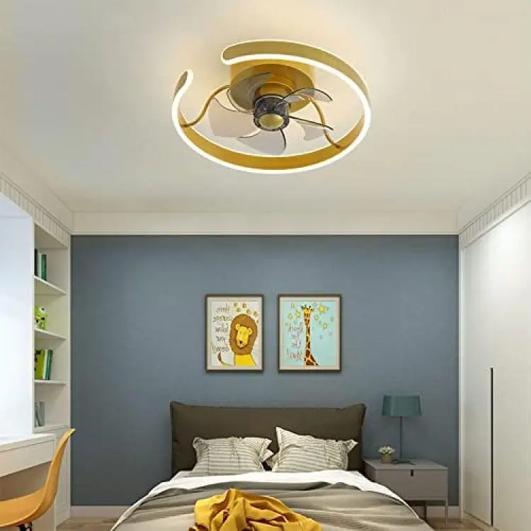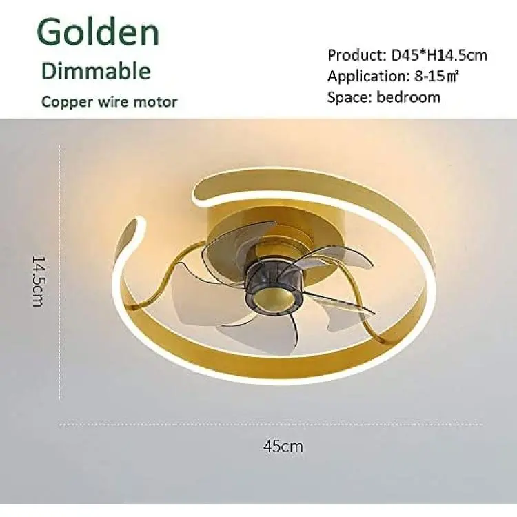 Ceiling Fan with Light and Remote Control, Modern Fan Light with 3 Invisible Fan Blades, Noiseless Reversible DC Motor for Bedroom/Living Room/Study/Kitchen/Porch (Gold)