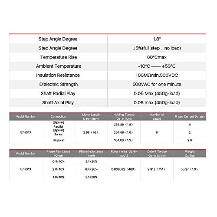 Cloudray Leadshine 2 Phase Stepper Motor 57HS13 for Nema 23 4A Length 76mm Shaft 6.35mm
