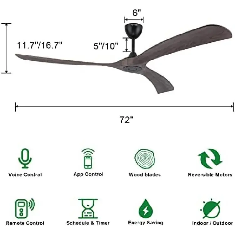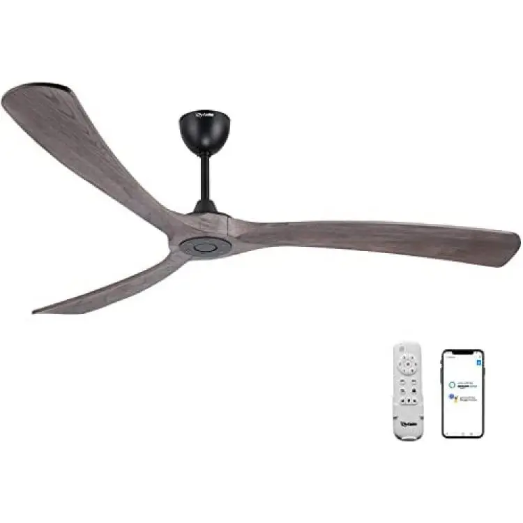 Ovlaim 72 inch Outdoor Smart WiFi Solid Wood Ceiling Fan, IP44 DC Motor Ceiling Fan with Remote Control 3 Blades, Compatible with Alexa, Google and Smart Life App