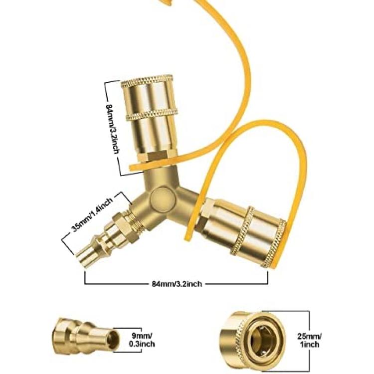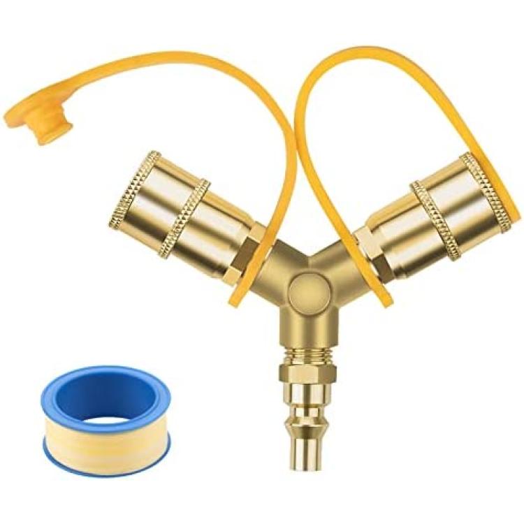 Shirbly 1/4" RV Propane Quick Connect Y Splitter, Propane Quick Connect Splitter, 2 Way LP Gas Adapter for RV Trailer Motor Home Tabletop Grill BBQ Heater Camping Stove
