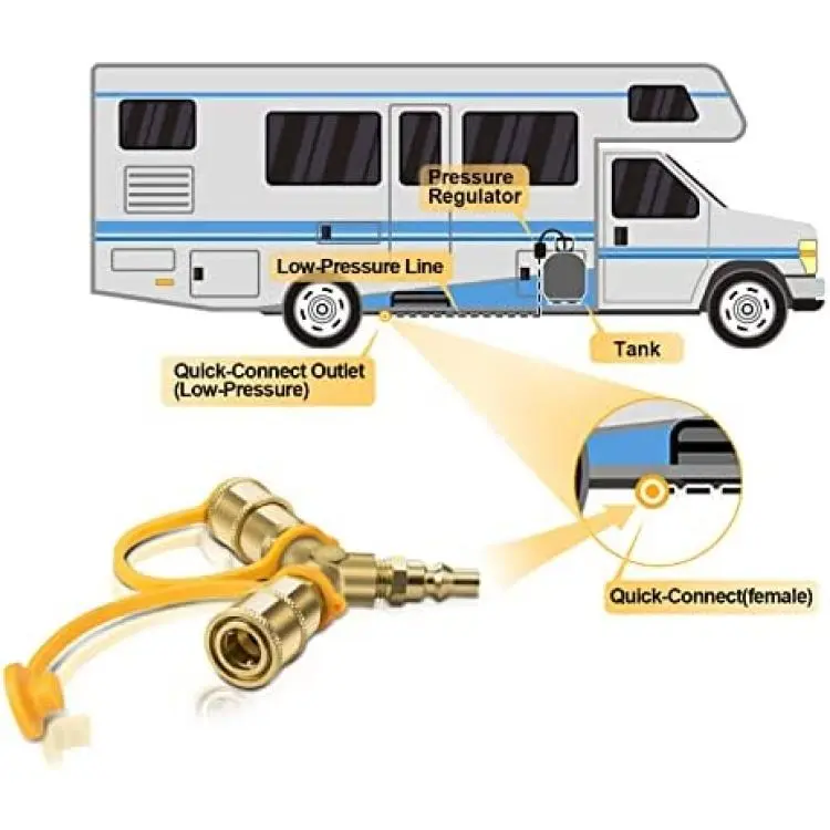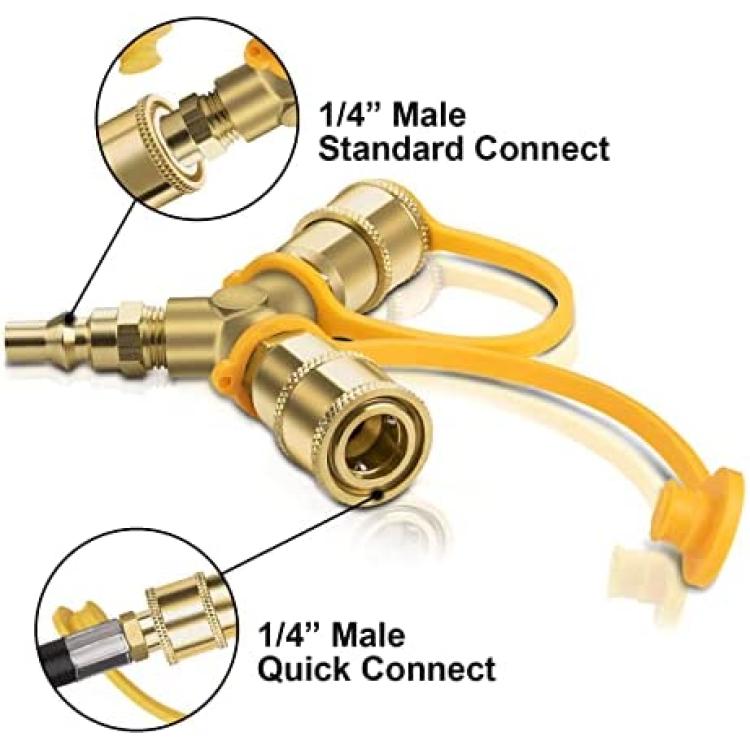 *☞ 2 WAY PROPANE SPLITTER: Quick connect propane y splitter can connect two 1/4" hoses on RV’s gas grill or stove at the same time. Easy use, no tools required, quick connect, disconnect and hookup.