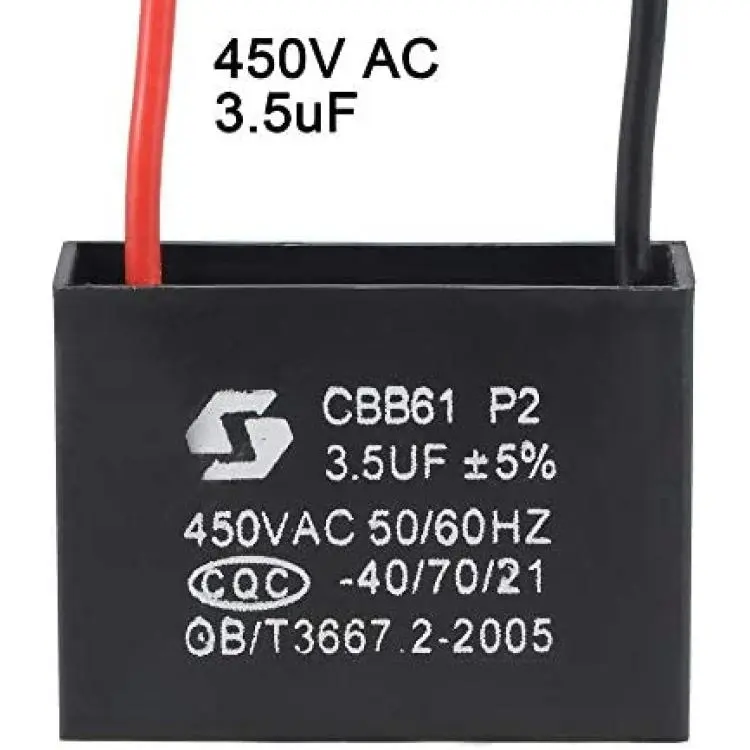 uxcell Ceiling Fan Capacitor CBB61 3.5uF 450V AC 2 Wires Metallized Polypropylene Film Capacitor 43x31x18mm for Electric Fan Pump Motor Generator