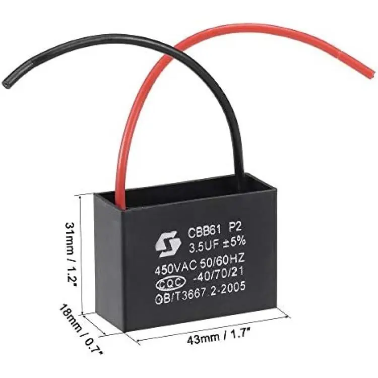 *[Specification] -Rated Capacity: 3.5uF; Tolerance: ±5%; Rated Voltage: 450V AC; Cover Size: 43x31x18mm / 1.7x1.2x0.7inch; Rated Frequency: 50/60Hz; Climatic Category: -40/70/21