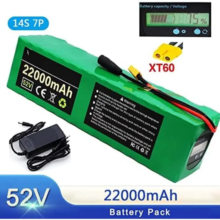High capacity 52V 22000mAh 14S 7P lithium-ion battery, suitable for electric bicycles, electric motorcycles, mopeds, electric scooters, electric tricycles, cross-country motorcycles, tricycles, replacement lead-acid batteries, golf carts, sightseeing cars, electric boats, pocket bicycles, adult electric bicycles, electric vehicles, takeaway vehicles, Outdoor camping, etc.