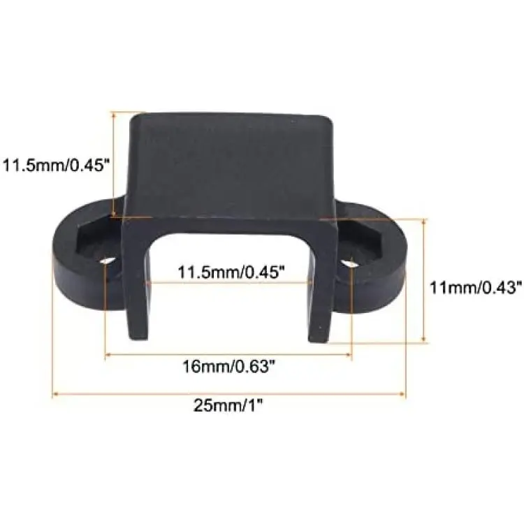 Motor mounting bracket, is in size of : 11.5mm x 25mm x 11mm/0.45-inch x 1-inch x 0.43-inch(L*W*H)total size, 11.5mm/0.45-inch motor mounting width, 16mm/0.63-inch bracket mounting hole center distance