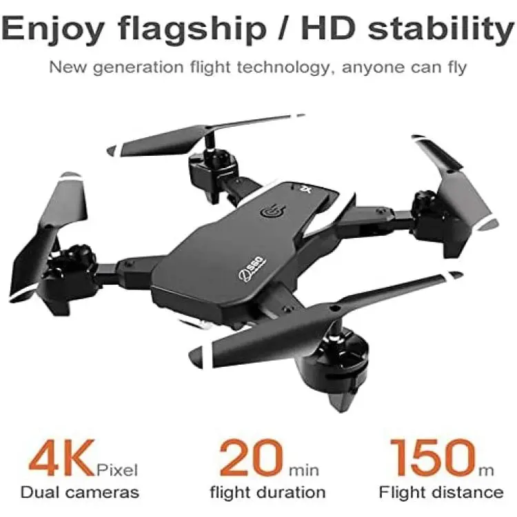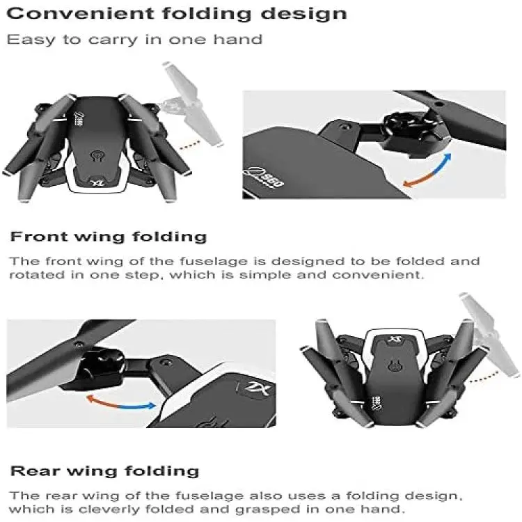 Folding body, one-key take-off and landing, one-key return home, dual camera (switchable) high-definition wifi connection, app operation, gesture photo/video, zoom shooting trajectory flight, 3 speeds, real-time transmission, emergency stop, headless mode, mv picture and video production and sharing