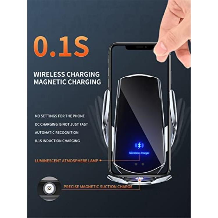 KERNKLENPP Car Wireless Charger Phone Holder,Intelligent Sensing,Fully Automatic 15w Fast Charging,Car Mount Air Vent Mount for iPhone13/ 12/11/X /8/8series,Samsung S Series/Note Series, silver