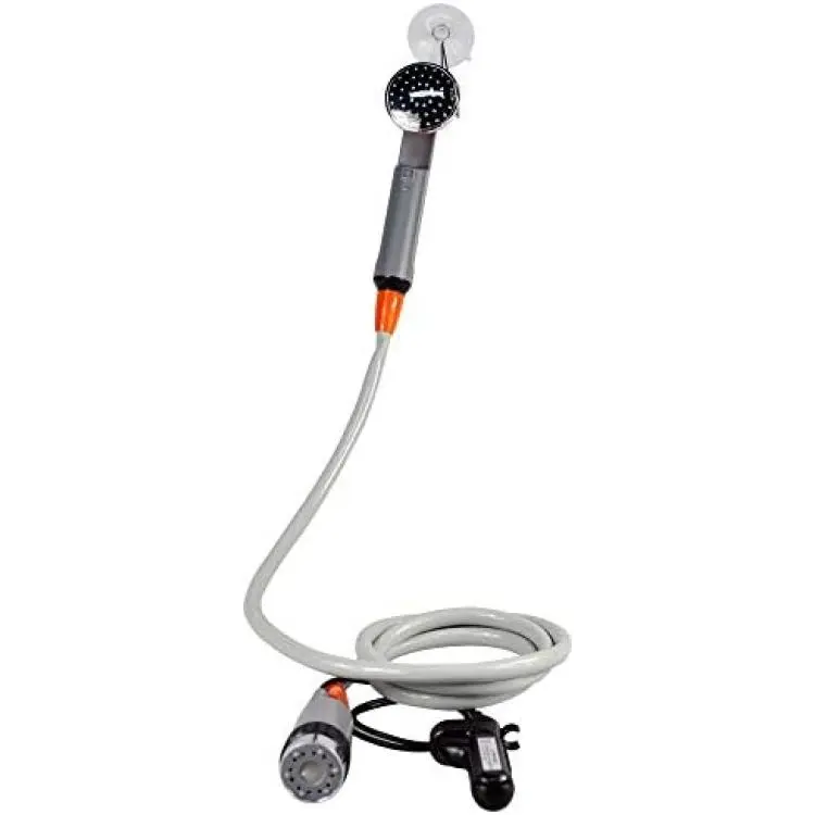 *▶COMPACT CAMP SHOWER -the kit consists of a powerful shower pump, a delicate shower head, a suction cap, a S-hook and the 1.8M hose and a rechargable battery, which ensures its mobility and flexibility while using