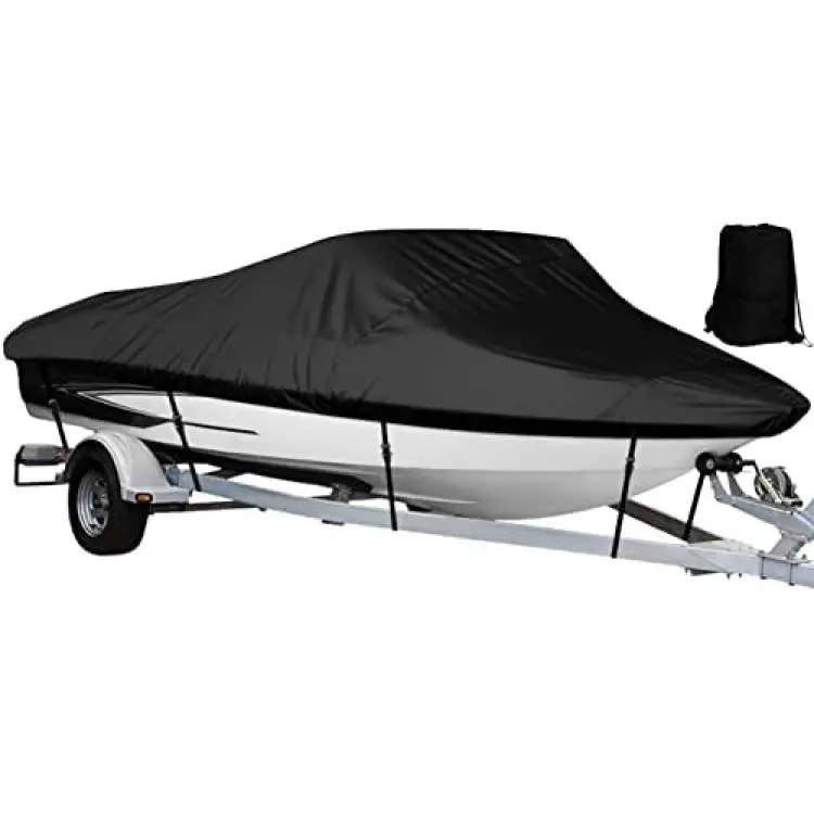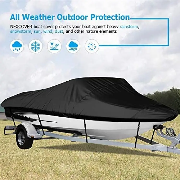 NEXCOVER Trailerable Boat Cover, Length: 14-16 Beam Width: up to 68", Waterproof Heavy Duty Cover, Fits V-Hull, TRI-Hull, Runabout, Pro-Style, Bass Boat, Storage Bag & Tightening Straps Included.