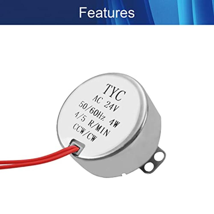 1Pcs Synchronous Motor AC 24V 4-5RPM Turntable Motor CW/CCW Direction 4W TYC-50 Horizontal Hole Shaft,Aicosineg