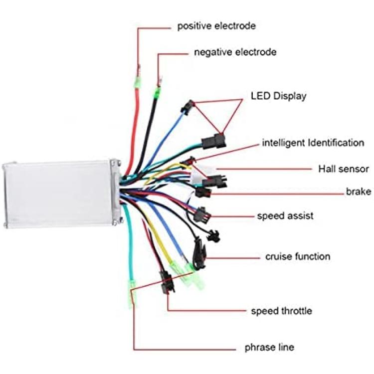 OVNSHVN Brushless Motor Controller 48V 250W/350W E-Bike Brushless Motor Controller for Electric Bicycle Scooter Universal with 810 SM LED Display Panel, Black & silver