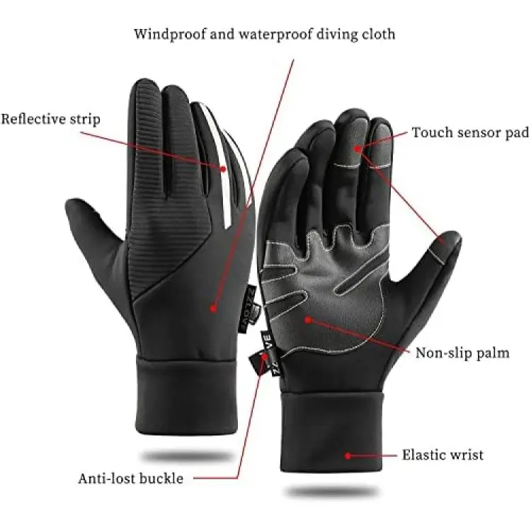 Winter Warm Touch Screen Gloves for Men and Women,ZZLOVE Windproof Waterproof Anti-Slip Cycling Running Gloves