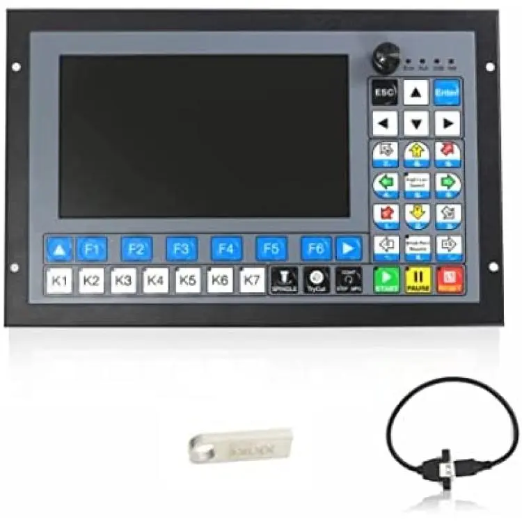 1) Max. 5 Axis; 1M Hz output frequency for each axis; 2-4 Axis linear interpolation, any 2 axis circular interpolation;2) 7 inch full color display screen; resolution ratio: 1024*600, 40 operation keys;
