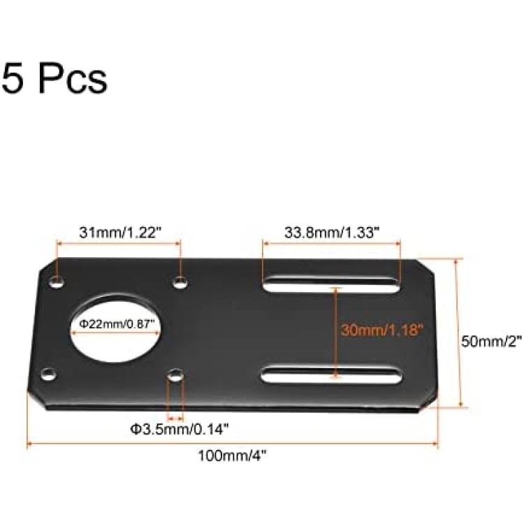 *Motor mounting bracket, is in size of : 100mm x 50mm/4-inch x 2-inch(L*W)total size, 3.5mm/0.14-inch motor mounting hole dia, 31mm/1.22-inch motor mounting hole center distance, 4.2mm x 33.8mm/0.17-inch x 1.33-inch bracket mounting hole size, 30mm/1.18-inch bracket mounting hole center distance, 22mm/0.87-inch shaft hole dia
