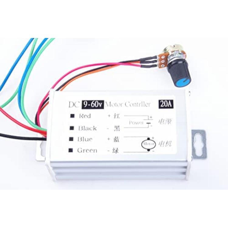 KNACRO DC Motor Speed Controller Motor Driver Controls Module DC 9V-60V 12V 24V 36V 48V 60V Motor Pulse Width Modulator Regulator 20A 1200W PWM Monitor Dimmer Governor with Switch & Knob