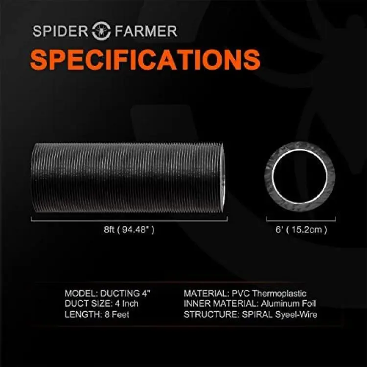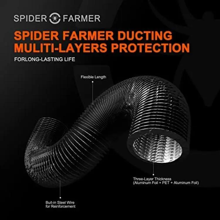 Spider Farmer 6 Inch Inline Fan and 6 Inch 8 Feet Black Ducting