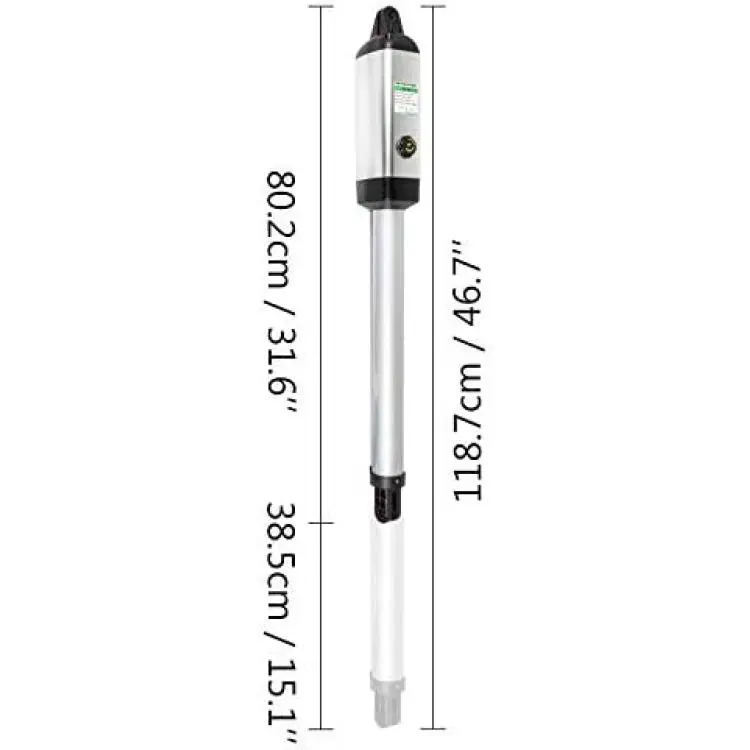 *Powerful Gate Opener: Motor Voltage: DC 24V; Motor Power: 30 W; Actuator Speed: 16 mm/s; Max. Actuator Travel Distance: 15"; The powerful actuator is made of steel and IP44 level protection for outdoor use. Pass tests of CE & ETL. Note: You need to purchase 2 of 12V batteries for use. (NOT INCLUDED)