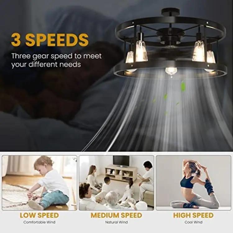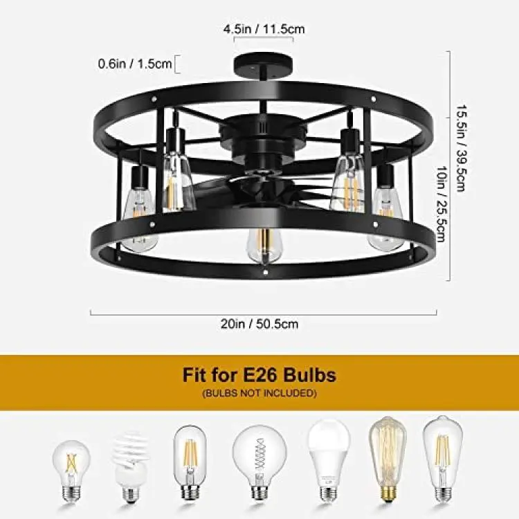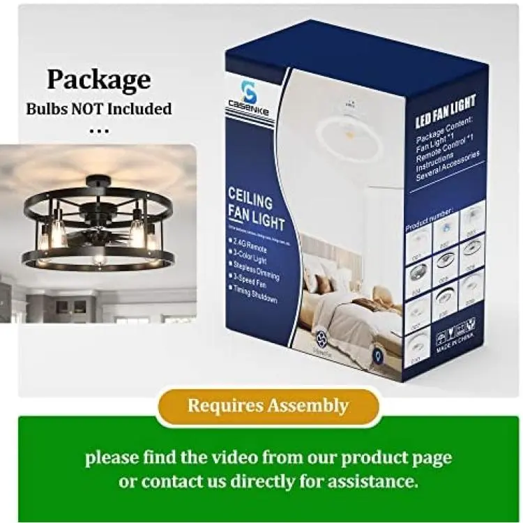 1*23A battery to remote is Not Included.You can use dimmable bulbs with a compatible dimmer switch.Our remote can not control the dimmable bulbs.Ultra Quiet Motor: Whisper wind motor delivers ultra-powerful air flow with quiet performance.3 Speed Adjustable: Adjust speed freely as you want, bringing you different wind experience in your life.1H /4 H Timing FuntionPlease install according to the instructions when installing.We suggest you ask a professional technician for help if you are not good at installing.Installation must be performed only after powering off or switching off.Do not poke any objects or fingers through the protective screens.Do not place any objects, such as clothing, on the device.