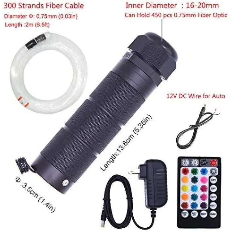 1 x 300 strands *0.75mm(0.03in)*2m(6.5ft) optic fiber cable.