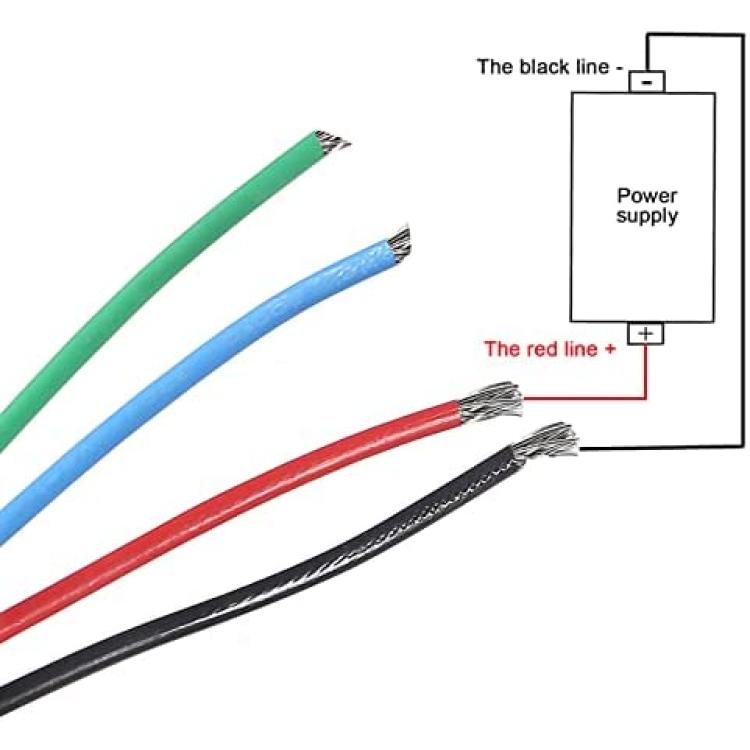 *【Easy Wiring】 Thick red wire for the positive of the power supply, and thick balck for the negative; thick blue wire for the motor positive, and the thick green for the motor negative