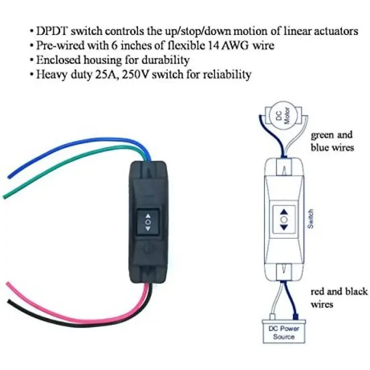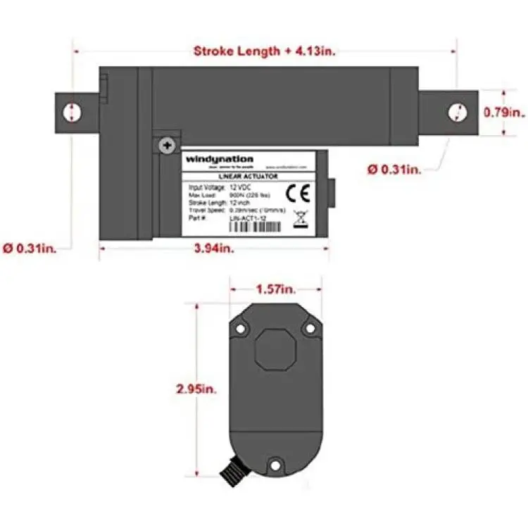Linear actuators are actuators which create motion in a straight line. Unlike a motor, which creates circular motion, a linear actuator can be used with any application that requires moving something in a straight line (e.g. up and down or side to side). Windy Nation LIN-ACT1 Series Linear Actuators are a powerful and reliable linear actuator for small to medium loads. We designed our linear actuator with pre-lubricated metal gears, pre-installed limit switches, and with an IP65 (suitable for outdoor use) water resistance rating. Included with your purchase is a linear actuator up/down switch, which is used to the control the motion of the linear actuator. There are two options for the switch: Momentary and Maintained. A momentary switch will only supply power to the actuator when the button is actively engaged by your finger. When you release the button, power is cut to the actuator and it stops. The maintained switch will continued to supply power to the actuator until it is manually turned off by the end user (A light bulb switch is a maintained switch, which means it will stay on until you turn it off).