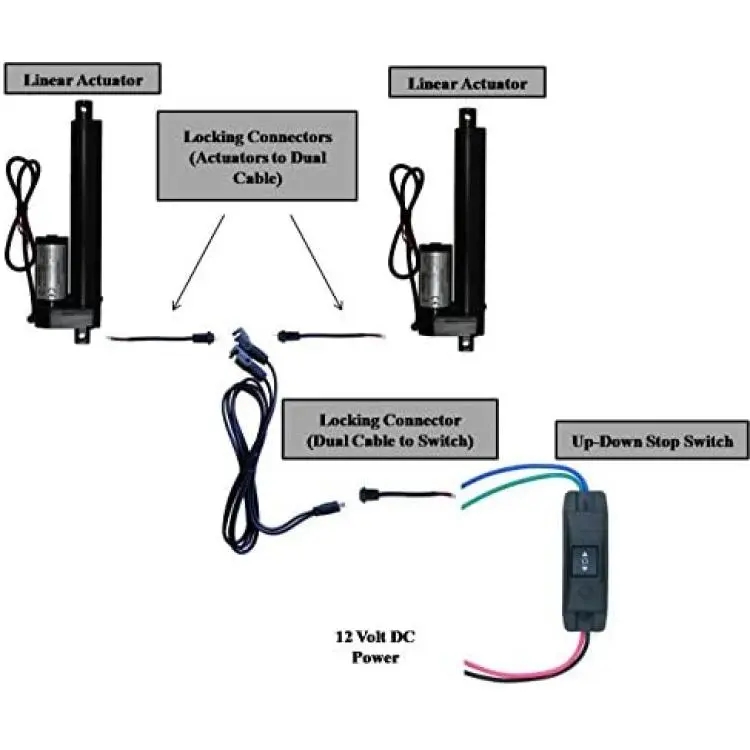 WindyNation (2pcs) 12 Volt, 225 lbs Linear Actuators + Up Down DPDT Switch + Mounting Brackets + Connectors (Momentary or Maintained Up Down Switch) (2" Linear Actuator, Momentary Switch)