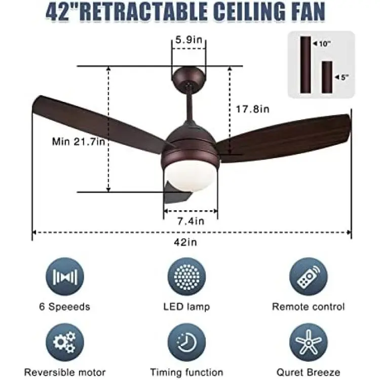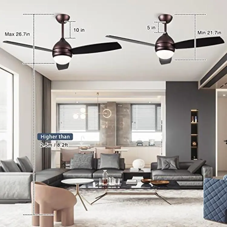 TOBITAN is a professional ceiling fan lighting fixture brand manufacturer. We're committed to provide high standard quality product and best assistant for everyone. 42 ceiling fan with lights remote control This is a beautiful elegant ceiling fan, it combines retractable ceiling fan and chandelier with LED light. Make your room comfortable and full of modern sense! Specifications The fan is 42 inches (106 cm) in diameter and 14lbs (6.36kg) in weight. Control Mode: Remote control Ceiling load is greater than 132lbs / 60kg; Ceiling height is greater than 110inches (280cm); Mount type: Down rod mount; Package comes with 2 rods 5'' (12.5cm) / 10'' (25cm) for choosing. Light Source: LED 32W, 3 color light change, It's suitable for installation in 12x12ft of bedroom, living room, kitchen, villa, office, restaurant. bars, cafes, lobby etc.