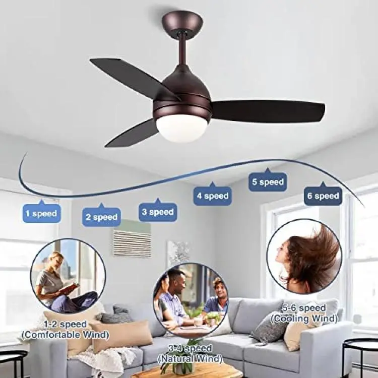 TAOBITAN 42 Inch indoor Ceiling Fan with Lights Flush Mount Ceiling Fan Modern 6 Speeds Small Ceiling Fans Remote Control for Living room Bedroom Kitchen dinding room