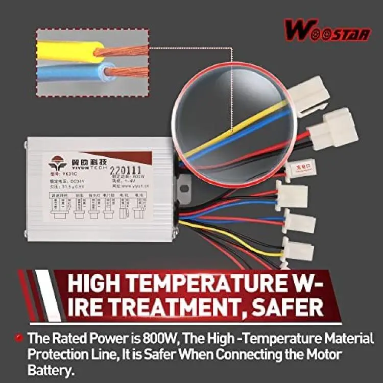 WOOSTAR Motorcycle Speed Controller 36V 800W Replacement for Electrical Scooter E Bike Bicycle Tricycle Brush