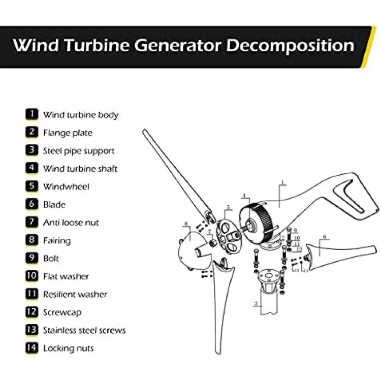 *[Wind Turbine Generator 3 Blades]-The blade is equipped with a copper inlay part that does not damage the nylon fiber when the bolt is tightened, and the blades are not easily deformed or broken. The working temperature is -40 ° C ~ 80 ° C, do not worry about the temperature being too low and causing the leaves to freeze.