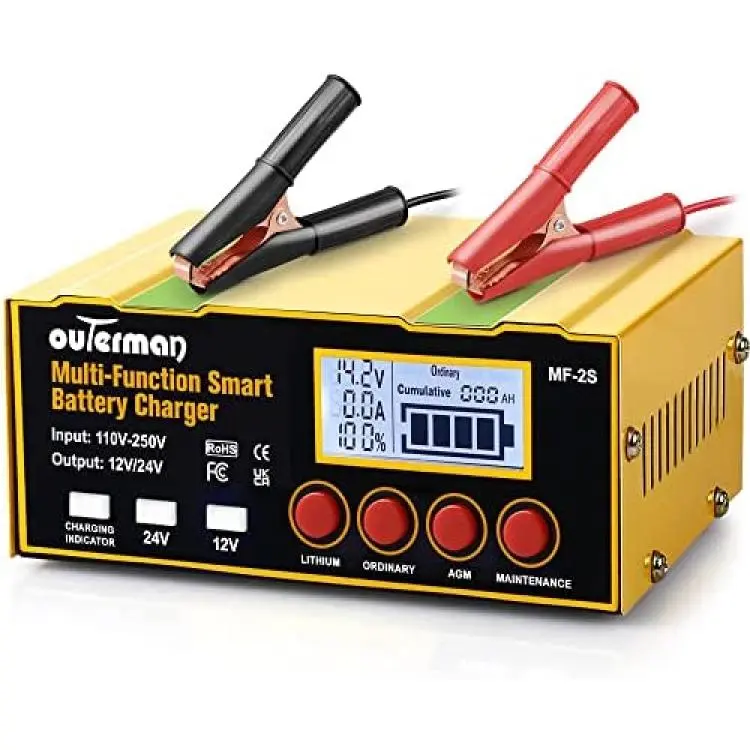 Ordinary Battery Mode: No matter what type of the battery (such as SLA battery,WET battery, GEL battery, maintenance-free battery, UPS battery, lithium iron phosphate battery, VRLA battery), as long as the voltage is 12V/24V, our battery charger can be used to charge for your battery.Lithium battery Mode: Commonly used in 12.6V±0.3V lithium battery, cobaltate battery (LICOO2) and ternary material lithium battery.Maintenance Mode: Maintenance after 1 hour, it will automatically switch the battery itself mode.AGM/EFB Mode: Commonly used in14.8V ±0.3V battery.Outerman professional battery charger and maintainer has all the features that you need, whether you are a pro or a beginner: Just connect the clamps to the battery terminal. The reverse polarity alarm will alert you when there is an improper connection. Once connected, the bench battery charger automatically does the rest for optimum performance. Fully automatic high frequency charging delivers 5 stage charging, automatically switching from fast charge, to top-off, to trickle charge. Multiple protection + pulse repair, let you quickly start your machines.Please Note: When two 12v batteries are charged together in series, if one battery voltage is too low, the total voltage is lower than 18v, the charger may not recognize that it is a 24V battery, and may stop charging. The solution is use 12V charge the low voltage first. when the total voltage over 18v, then use 24V charged them together.