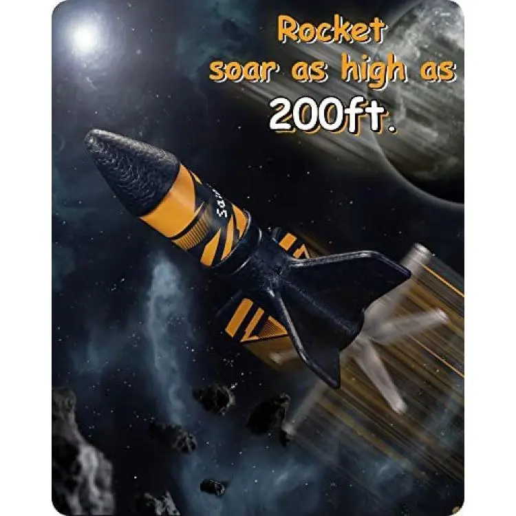 *2 HEIGHT SETTING: The height of a motorized air rocket toy depends on the mode you choose. It will soar up to 200ft if you press the switch twice and fly up to 100ft if you press once.