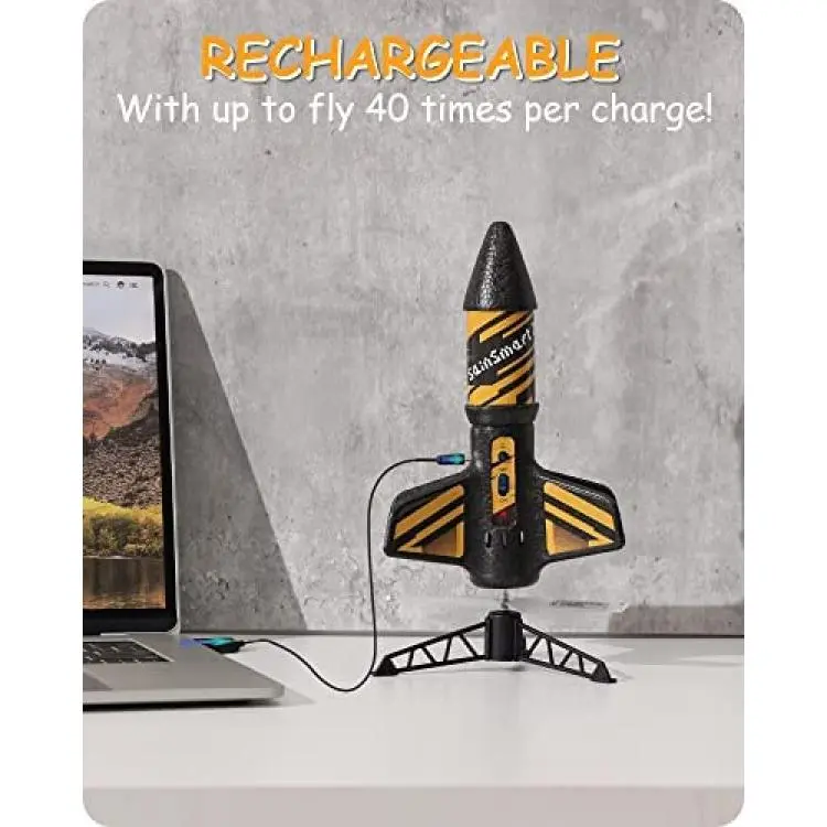 *RECHARGEABLE ROCKET: Fully charged in 40 minutes, the rocket launcher toy can fly up to 25-40 times, which depend on the mode you choose.