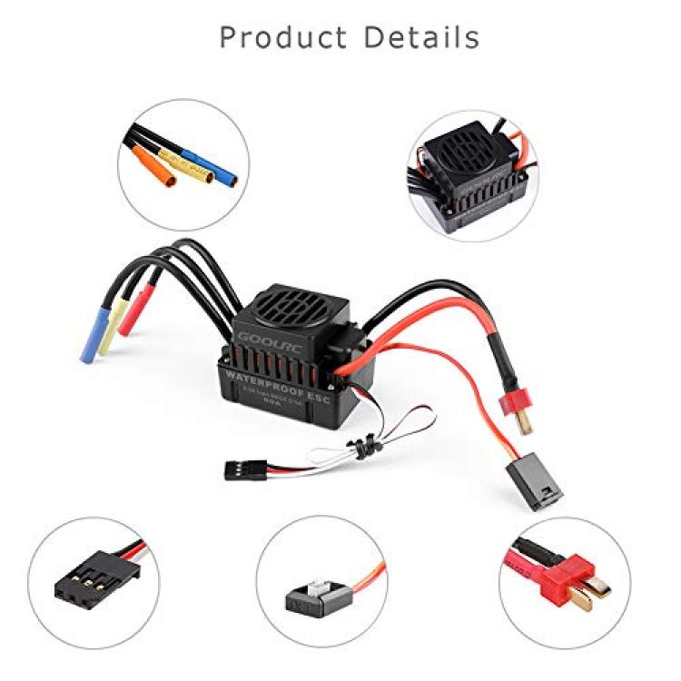 GoolRC Brushless Motor Waterproof 3650 4300KV Upgrade Brushless Motor with 60A ESC Combo Set for 1/10 RC Car Truck