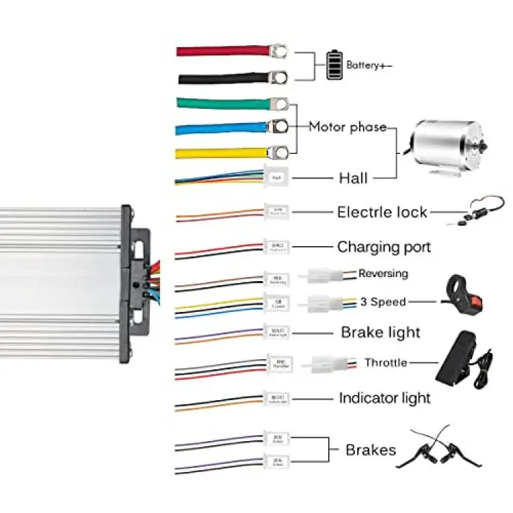 *【12Mosfet 30A Brushless Motor Controller】- The Motor Kit include 12MOS 30A Speed Controller, BLDC Motor Controller with high Quality Material, is enough for the Motor, with Hall 3-Speed Reverse Throttle Charging e-Braking Power lock Light Functions etc.