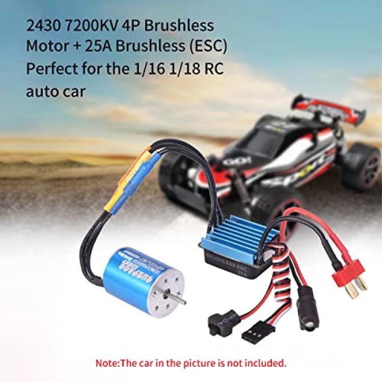 YOUQUKEJI 2430 7200KV 4P Sensorless Brushless Motor with 25A Brushless ESC Electric Speed Controller for 1/18 1/16 RC Car Truck