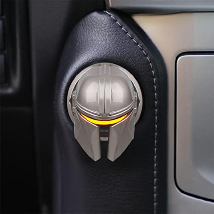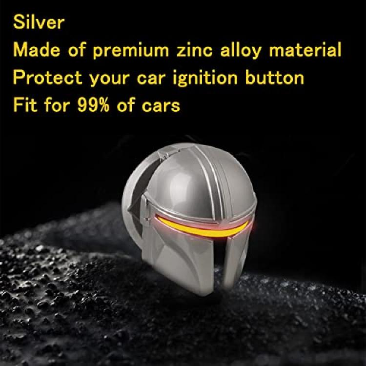 Mando The Mandalorian Star Wars Push to Start Button Cover, Car Ignition Button Cover, Car Start and Stop Button Decoration Ring, Anti Scratch Car Button Decoration Ring (Silver)