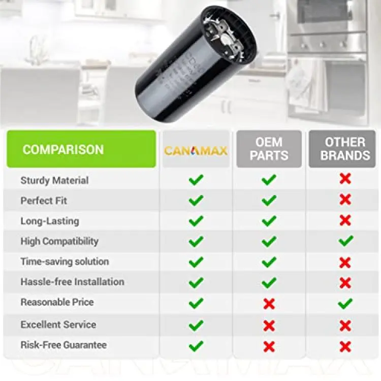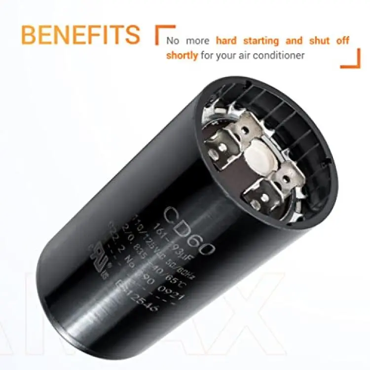 Canamax 161-193 uf/MFD 110-125 VAC ±20% 50/60 Hz CD60 Round Motor Well Pump Start Capacitor - Replacement for Central Air-Conditioners, Heat Pumps, Condenser Fan Motors, Refrigerators, Washers
