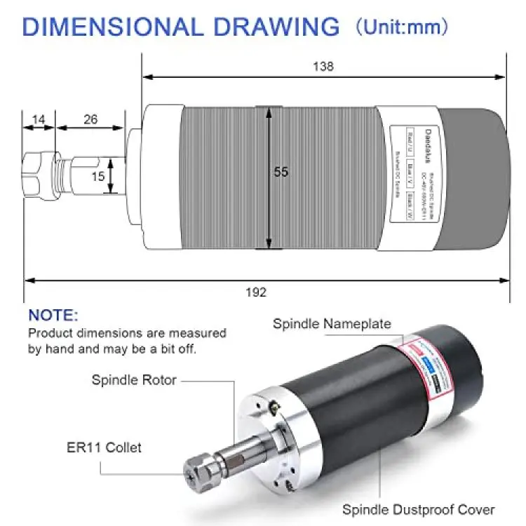 *★Spindle: 3 Wires-Brush-less, 500w, ER11, 48v DC, 0-12000RPM, φ 2-3/16"