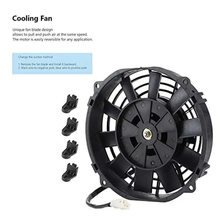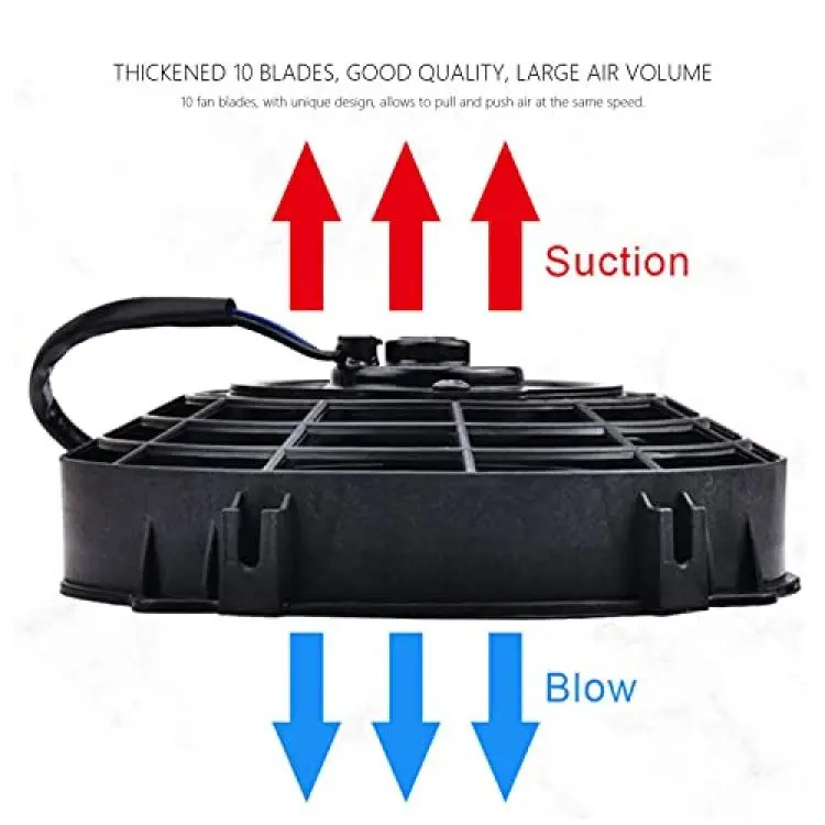 *High Performance Cooling Fan: Improve the cooling of the entire engine bay, including radiator, A/C system, intercooler, oil system and transmission. 10 fan blades, with unique design, allows to pull and push air at the same speed.