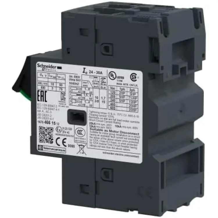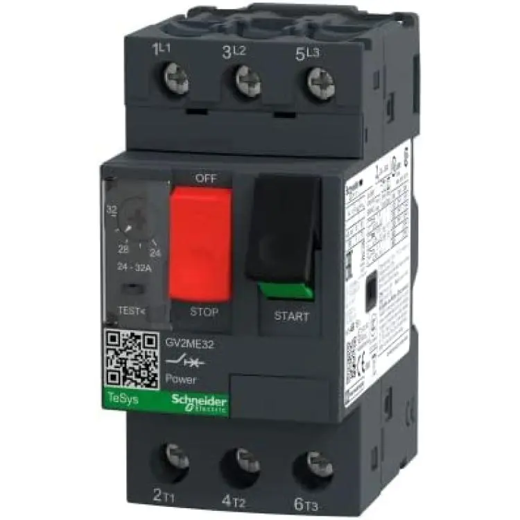 Schneider Electric Manual Motor Starter, Button, 24-32A, 1P (GV2ME32)