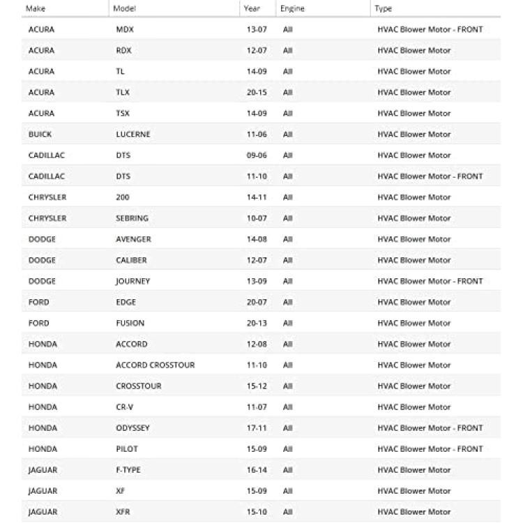 Compatible With2013-2007 MDX Front HVAC Blower Motor2012-2007 RDX Front HVAC Blower Motor2014-2009 T..