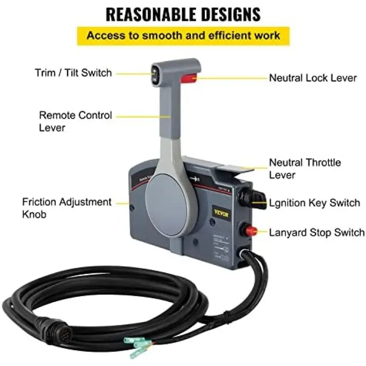 *Reasonable Designs: The outboard remote controls structure is very stable and practical. There is neutral control lever, neutral throttle lever, friction adjustment knob, trim and tilt switch, a control lever for smooth reverse and forward, and various accessories are also provided to complete the work efficiently.